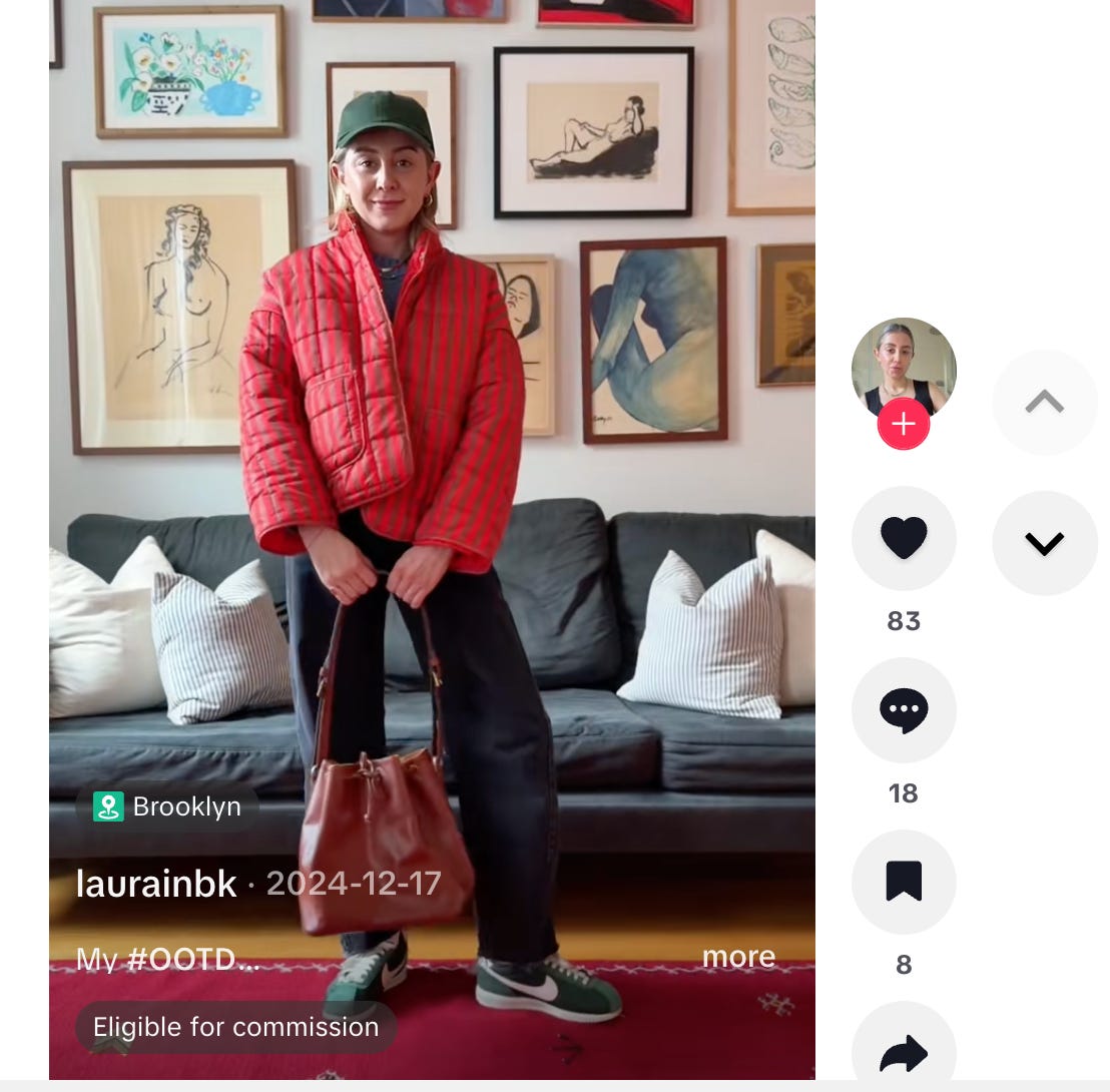 A few weeks ago, I was scrolling on TikTok and I came across a cool Brooklyn mom with a really cool jacket. It was red-and-brown striped, a little bit quilt-y, and indie-brand-coded, and I wanted it immediately.